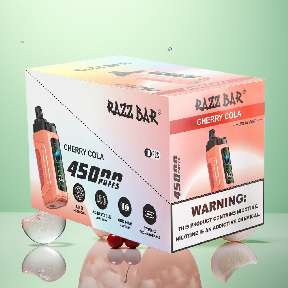 Le Razz Bar 45000 Puffs allie innovation et fiabilité, offrant une expérience de vapotage fluide et intense. Son coil Mesh 1.0 Ohm garantit des saveurs pures, tandis que l'airflow ajustable s'adapte à tous les styles. Avec sa batterie rechargeable et son format compact, il est parfait pour la vente en France Wholesale.